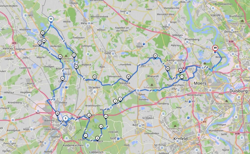 Ca. 160 km am Niederrhein mit Stopp in Venlo am Marktplatz und anschließend an einem netten Cafe.