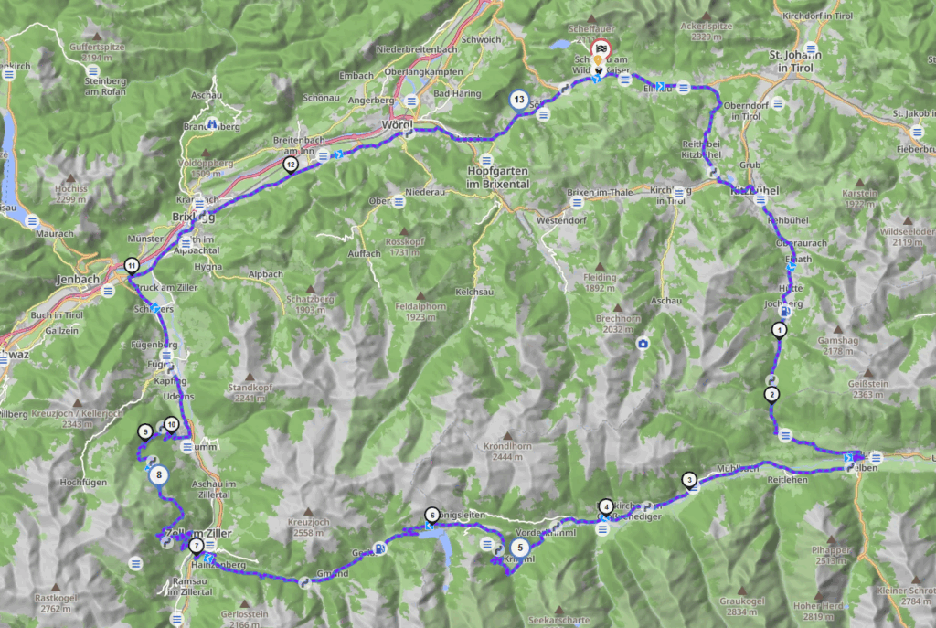 Österreich – Scheffau, Kitzbühel, Krimmler Wasserfälle, Gerlos Pass, Zillertaler Höhenstraße, 194 km